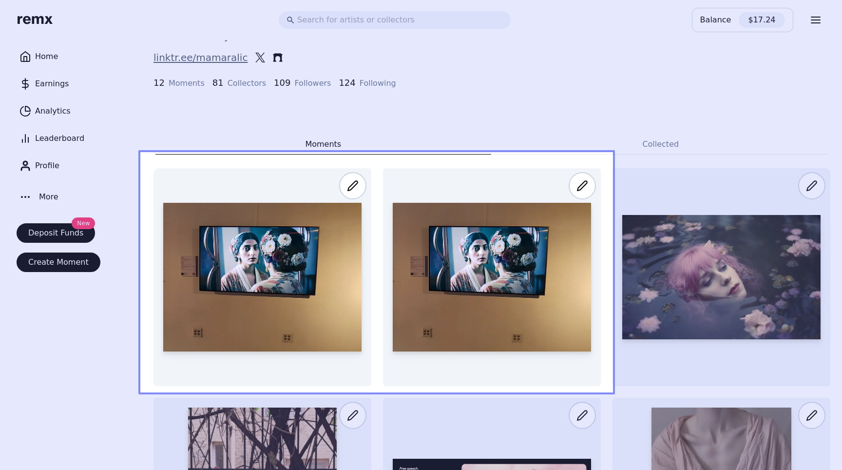 My recent Collectible Moment is visible twice on my page. When I go into both, they have the same stats. Is it visible twice for you too or only a bug on my side?