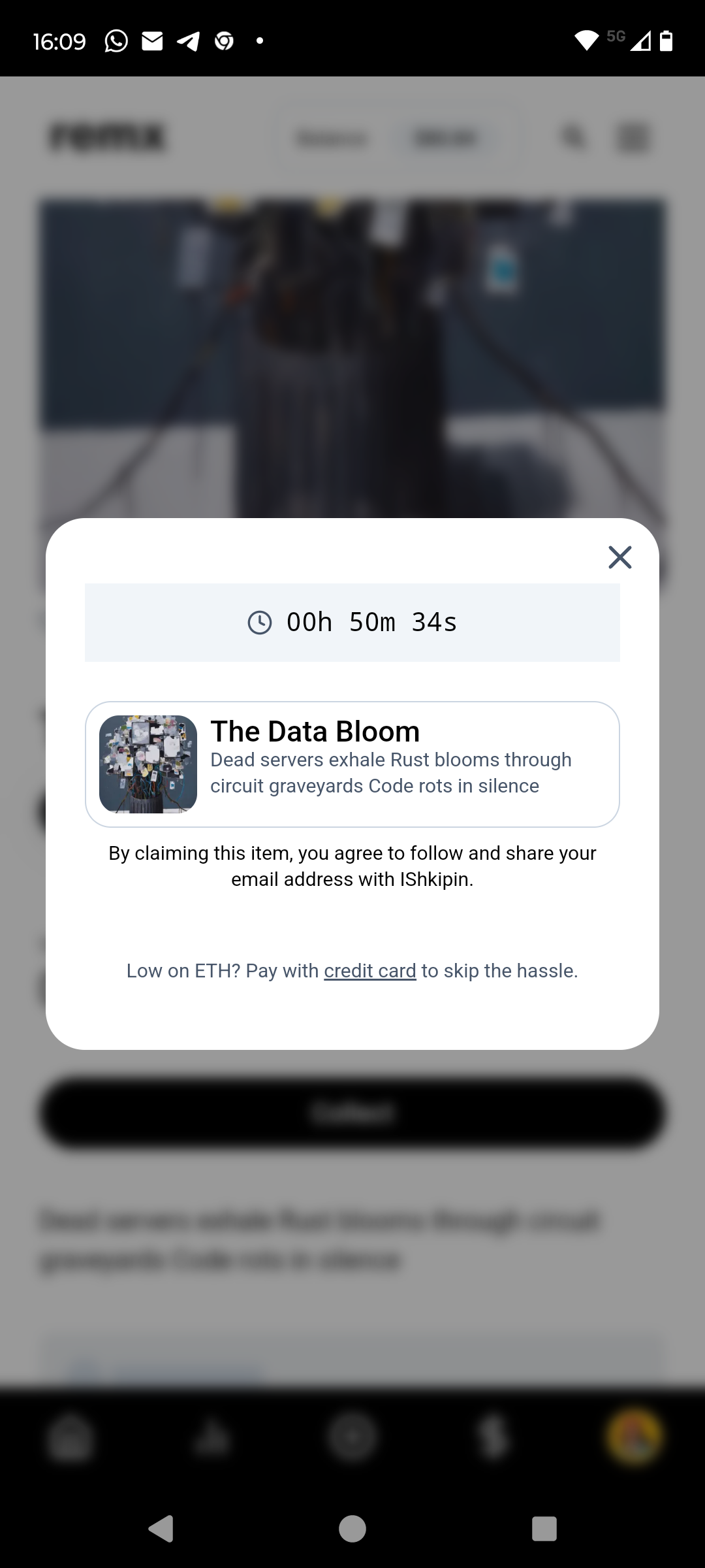 Hi since this morning I can't claim any moment for free, neither use the “pay with balance” button (just not working). Just get this message - low of Eth? Pay with card). Tried out to pay with credit cart, this works without problems.