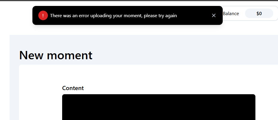 hello dear remx! i’m new and try to post my first moment but have an error without any clarification. my art is a 95 mb mp4 video. the cover is gif ( and tried even with jpeg ). help me please