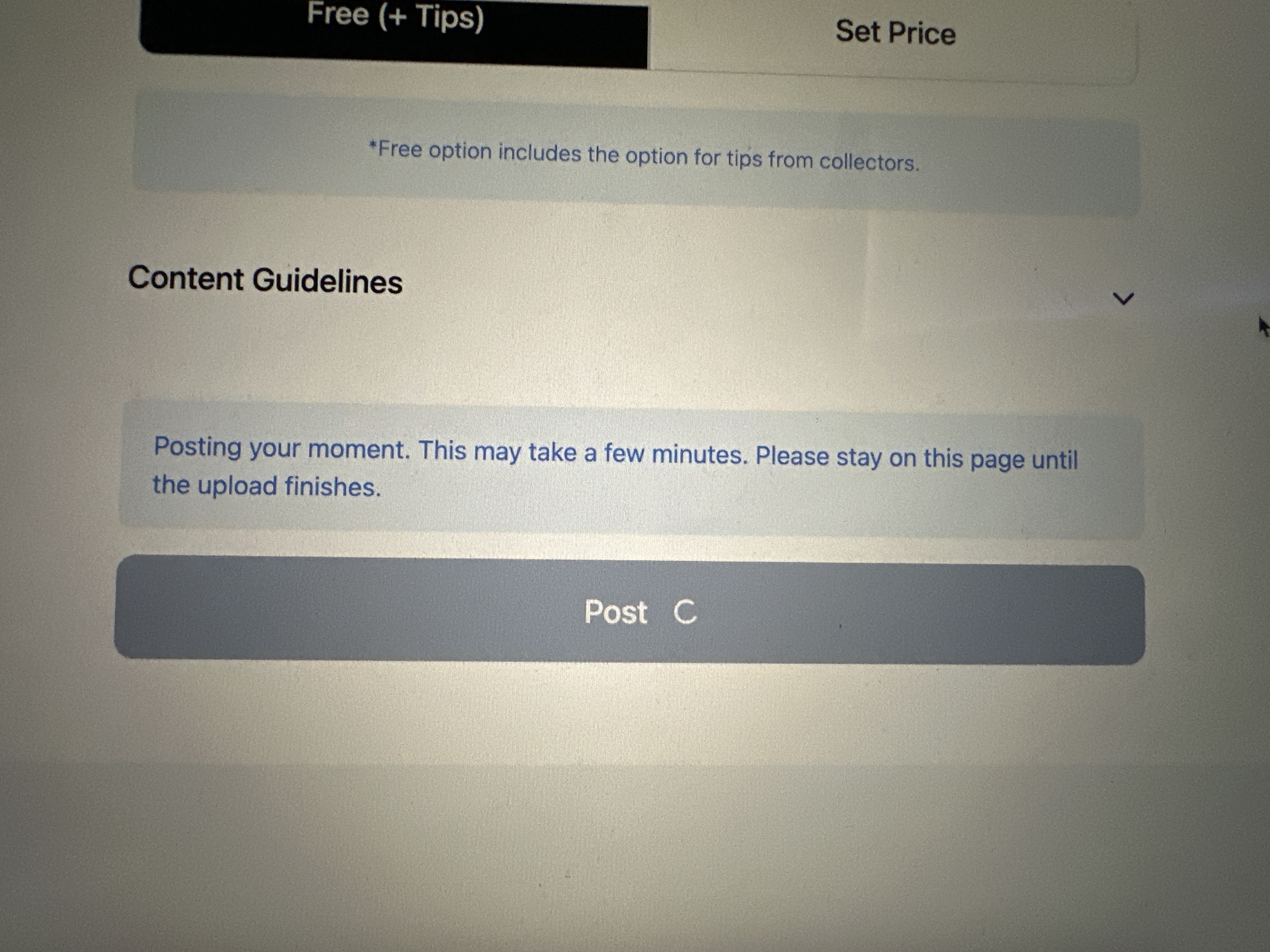 I've been waiting for a very long time, it's been 30 minutes and my moment hasn't uploaded