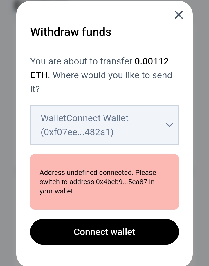 Hi fam, I get this message when I make the withdrawal, but that wallet is not mine, I would like to know if it is a general problem or just in my profile. Thanks